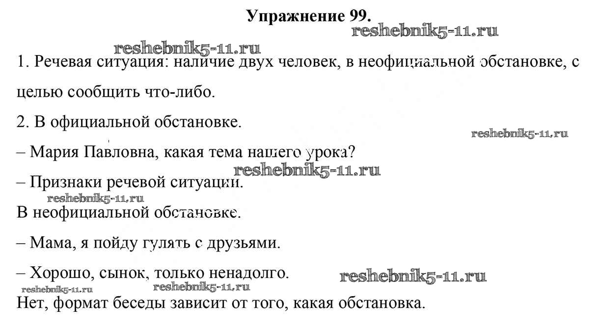 Готовая домашняя работа с ответами по Русскому языку за 5 класс Мурина, Игнатович, Жадейко Учебник Часть 1, 2 Национальный институт образования 2014 ФГОС - Часть 1. Задания 99