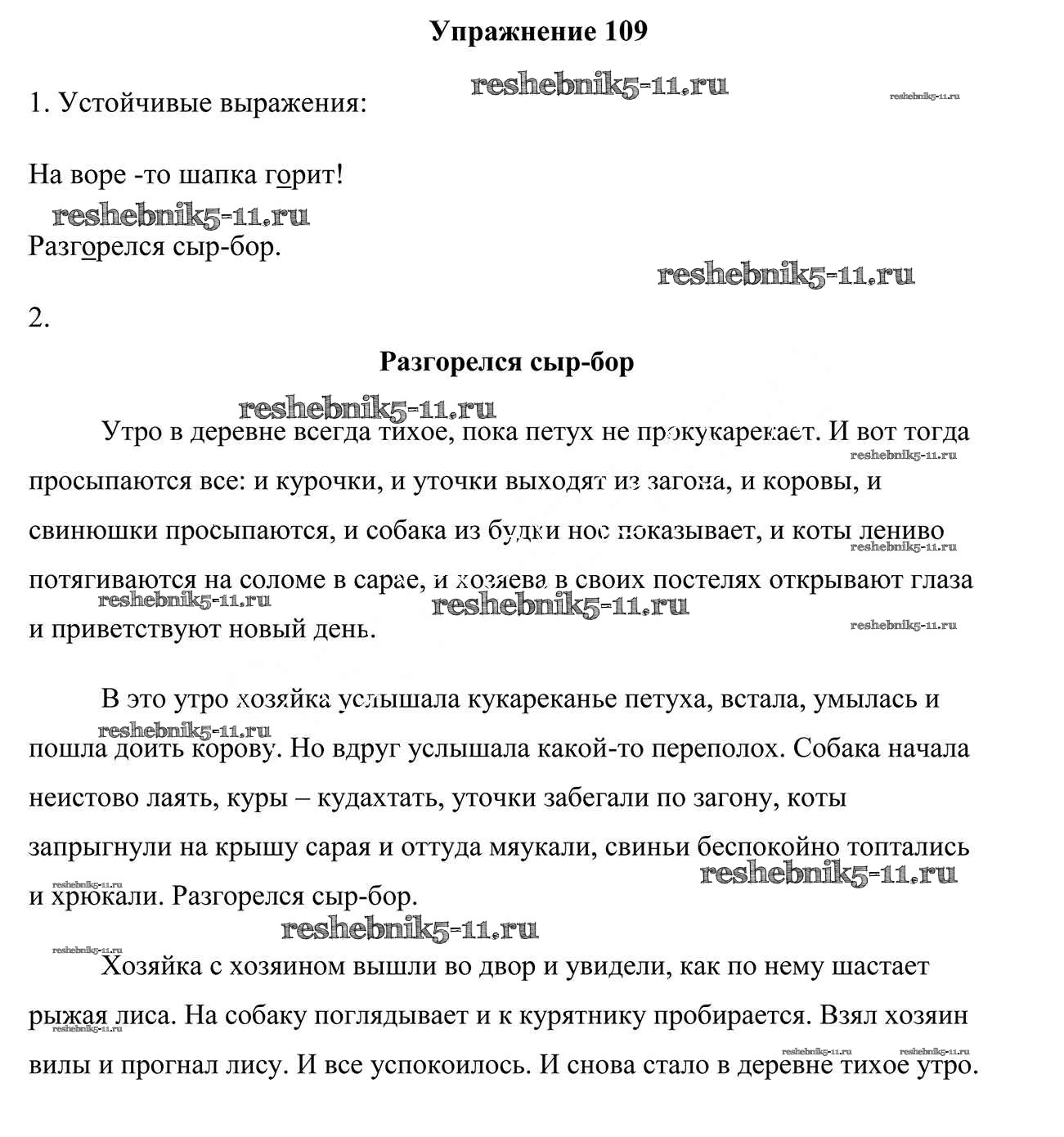 Готовая домашняя работа с ответами по Русскому языку за 5 класс Мурина, Игнатович, Жадейко Учебник Часть 1, 2 Национальный институт образования 2014 ФГОС - Часть 2. Задания 109