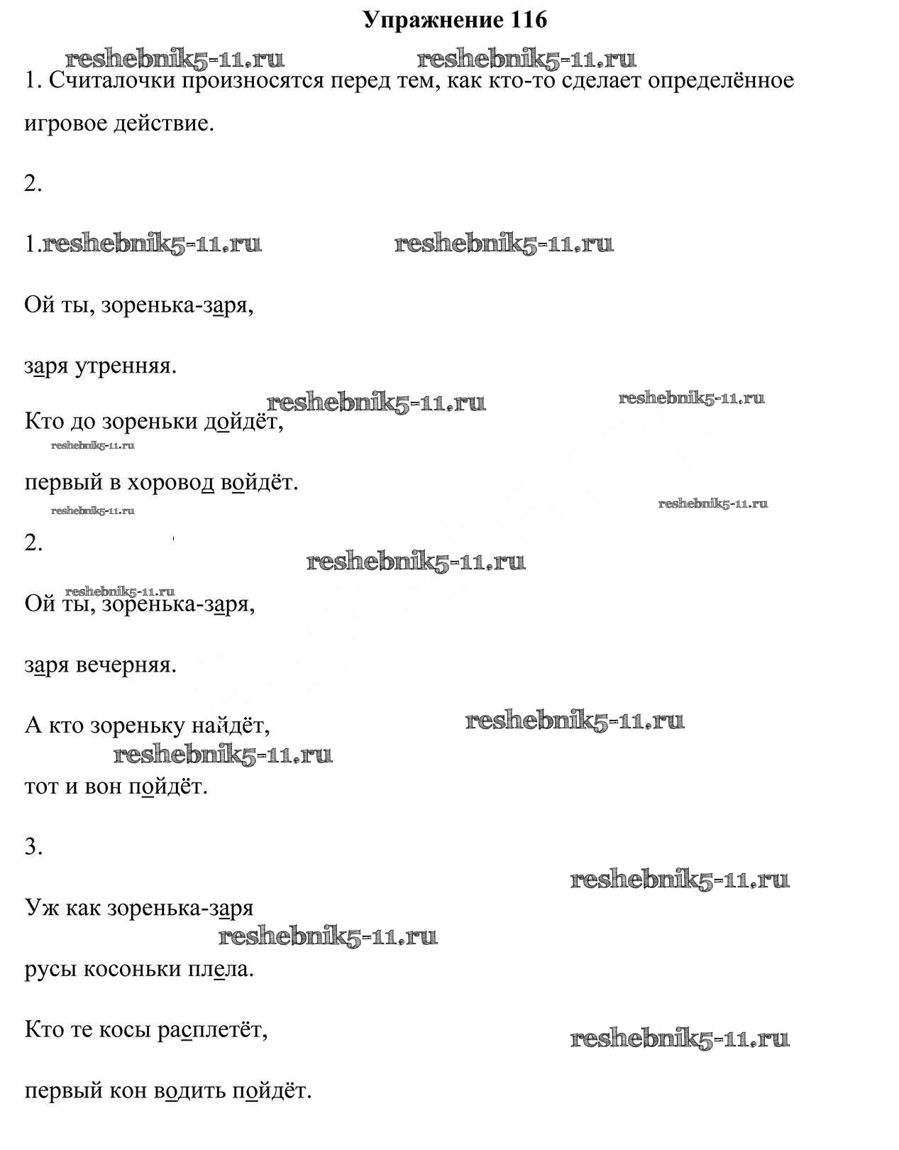 Готовая домашняя работа с ответами по Русскому языку за 5 класс Мурина, Игнатович, Жадейко Учебник Часть 1, 2 Национальный институт образования 2014 ФГОС - Часть 2. Задания 116