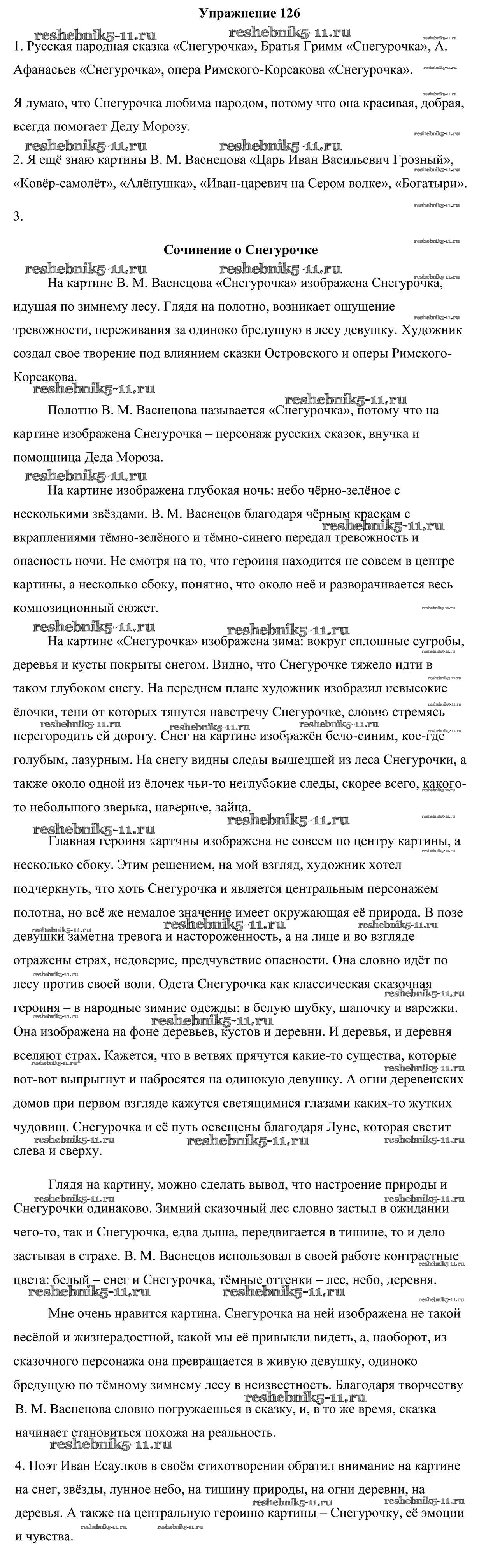 Готовая домашняя работа с ответами по Русскому языку за 5 класс Мурина, Игнатович, Жадейко Учебник Часть 1, 2 Национальный институт образования 2014 ФГОС - Часть 2. Задания 126