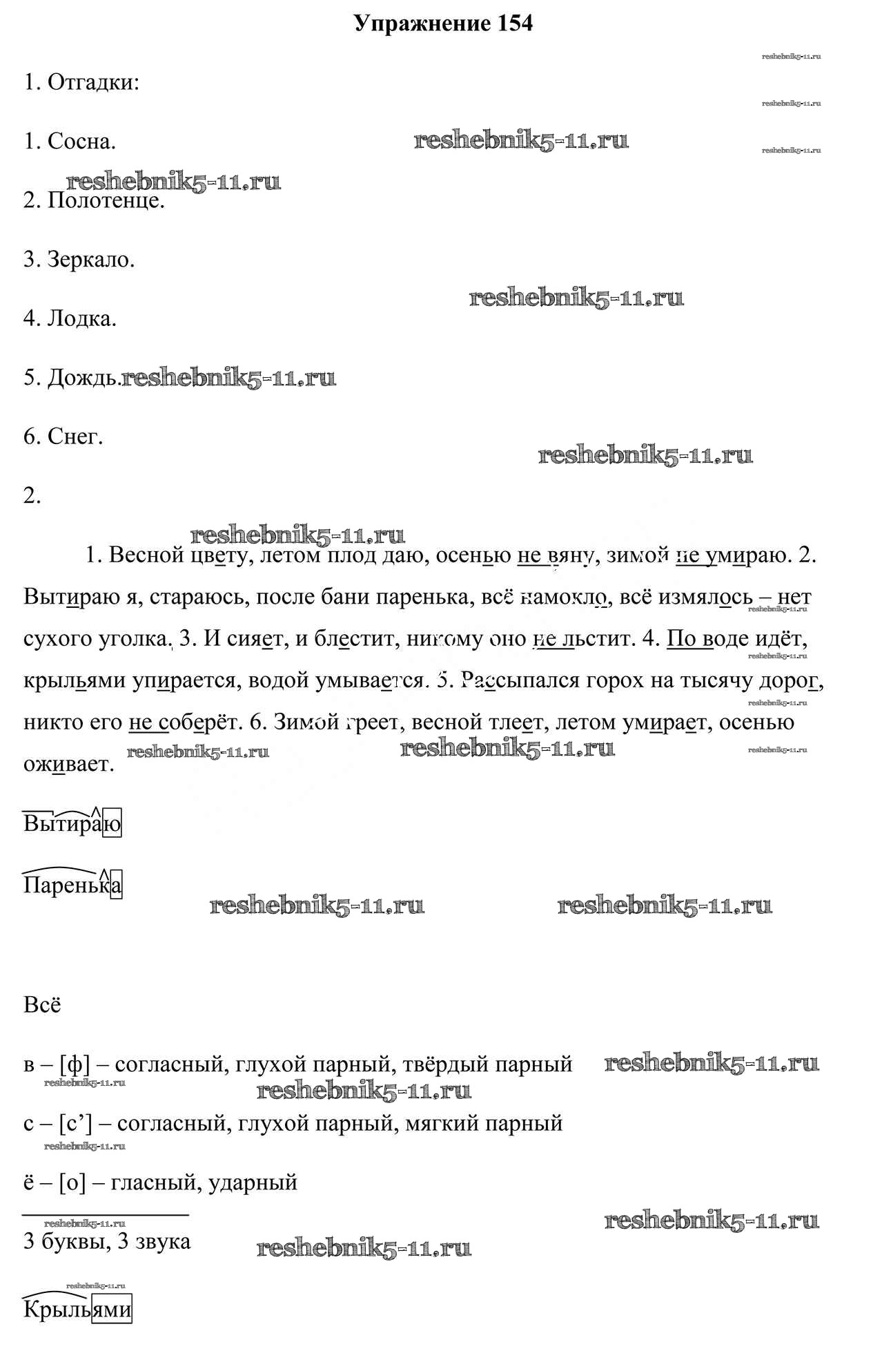 Готовая домашняя работа с ответами по Русскому языку за 5 класс Мурина, Игнатович, Жадейко Учебник Часть 1, 2 Национальный институт образования 2014 ФГОС - Часть 2. Задания 154