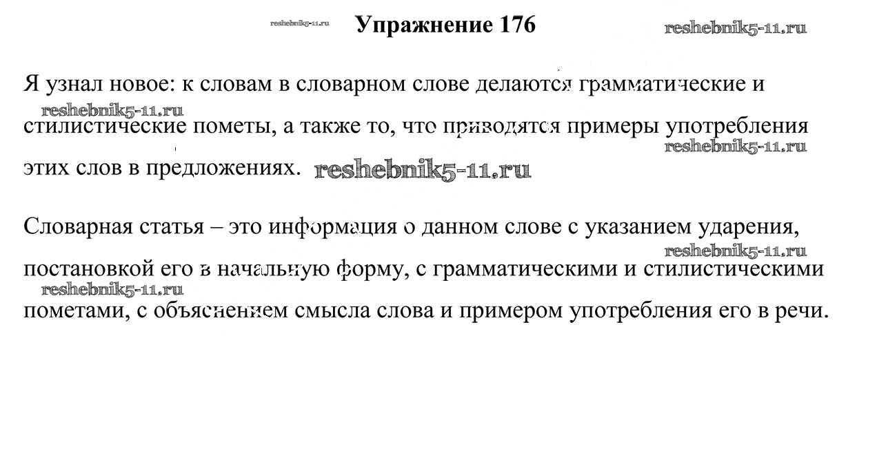 Готовая домашняя работа с ответами по Русскому языку за 5 класс Мурина, Игнатович, Жадейко Учебник Часть 1, 2 Национальный институт образования 2014 ФГОС - Часть 2. Задания 176