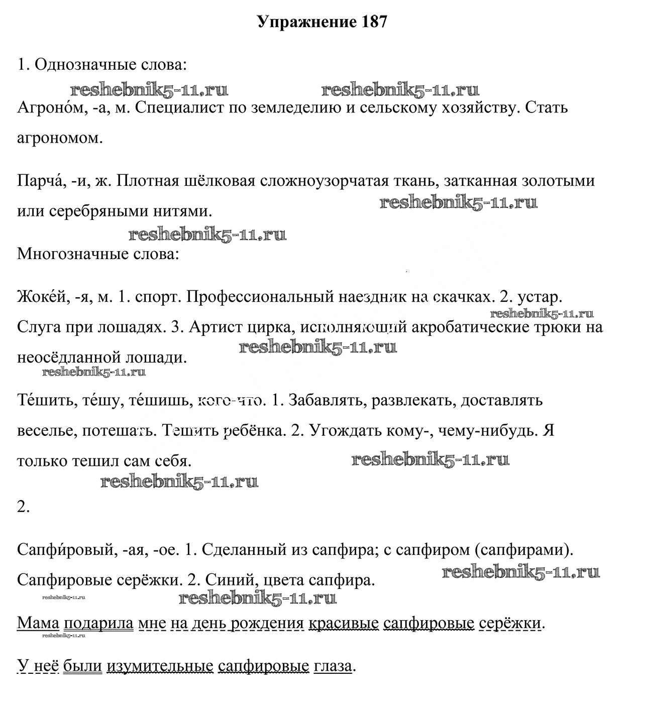 Готовая домашняя работа с ответами по Русскому языку за 5 класс Мурина, Игнатович, Жадейко Учебник Часть 1, 2 Национальный институт образования 2014 ФГОС - Часть 2. Задания 187