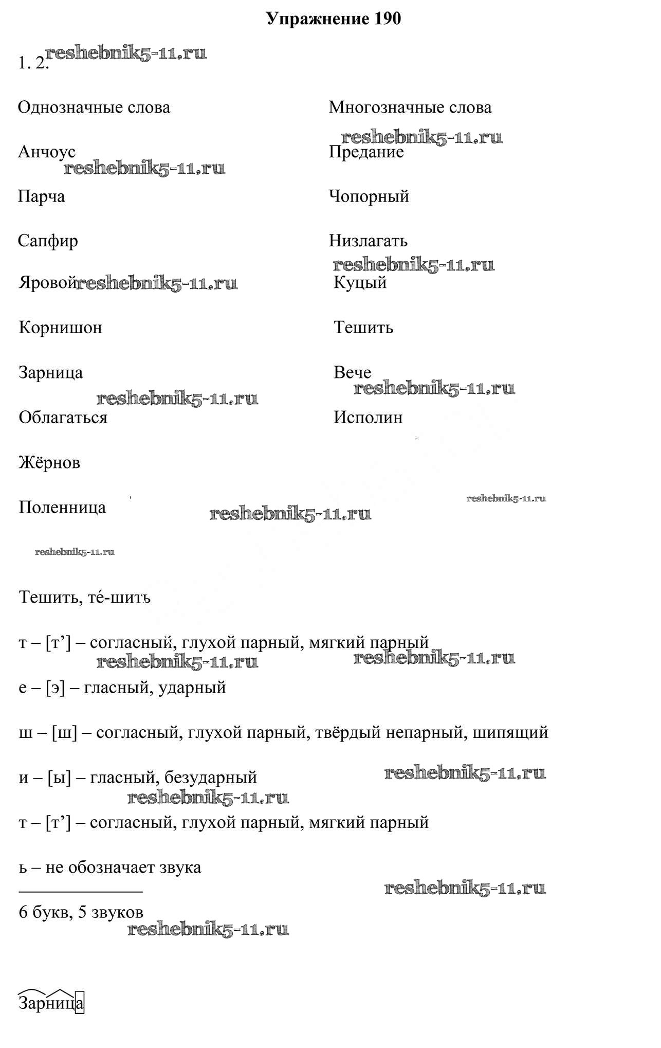 Готовая домашняя работа с ответами по Русскому языку за 5 класс Мурина, Игнатович, Жадейко Учебник Часть 1, 2 Национальный институт образования 2014 ФГОС - Часть 2. Задания 190