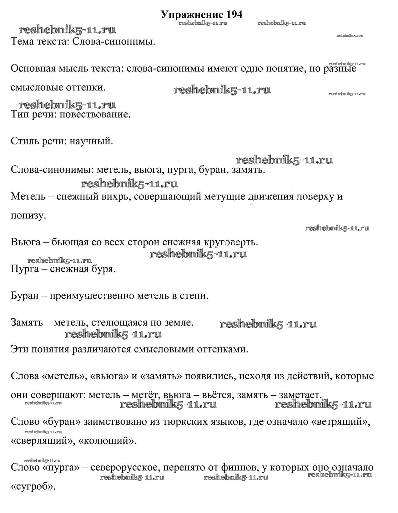 Готовая домашняя работа с ответами по Русскому языку за 5 класс Мурина, Игнатович, Жадейко Учебник Часть 1, 2 Национальный институт образования 2014 ФГОС - Часть 2. Задания 194