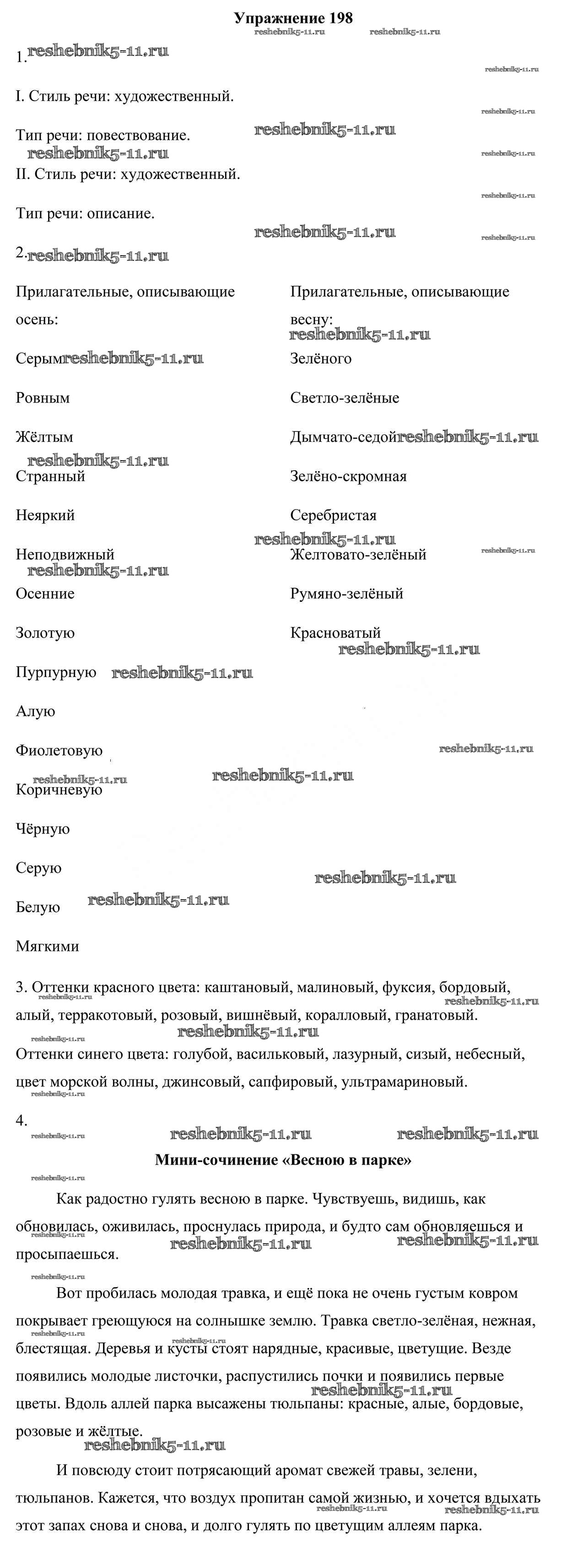 Готовая домашняя работа с ответами по Русскому языку за 5 класс Мурина, Игнатович, Жадейко Учебник Часть 1, 2 Национальный институт образования 2014 ФГОС - Часть 2. Задания 198