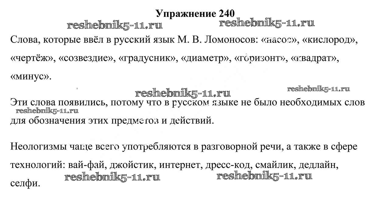 Готовая домашняя работа с ответами по Русскому языку за 5 класс Мурина, Игнатович, Жадейко Учебник Часть 1, 2 Национальный институт образования 2014 ФГОС - Часть 2. Задания 240