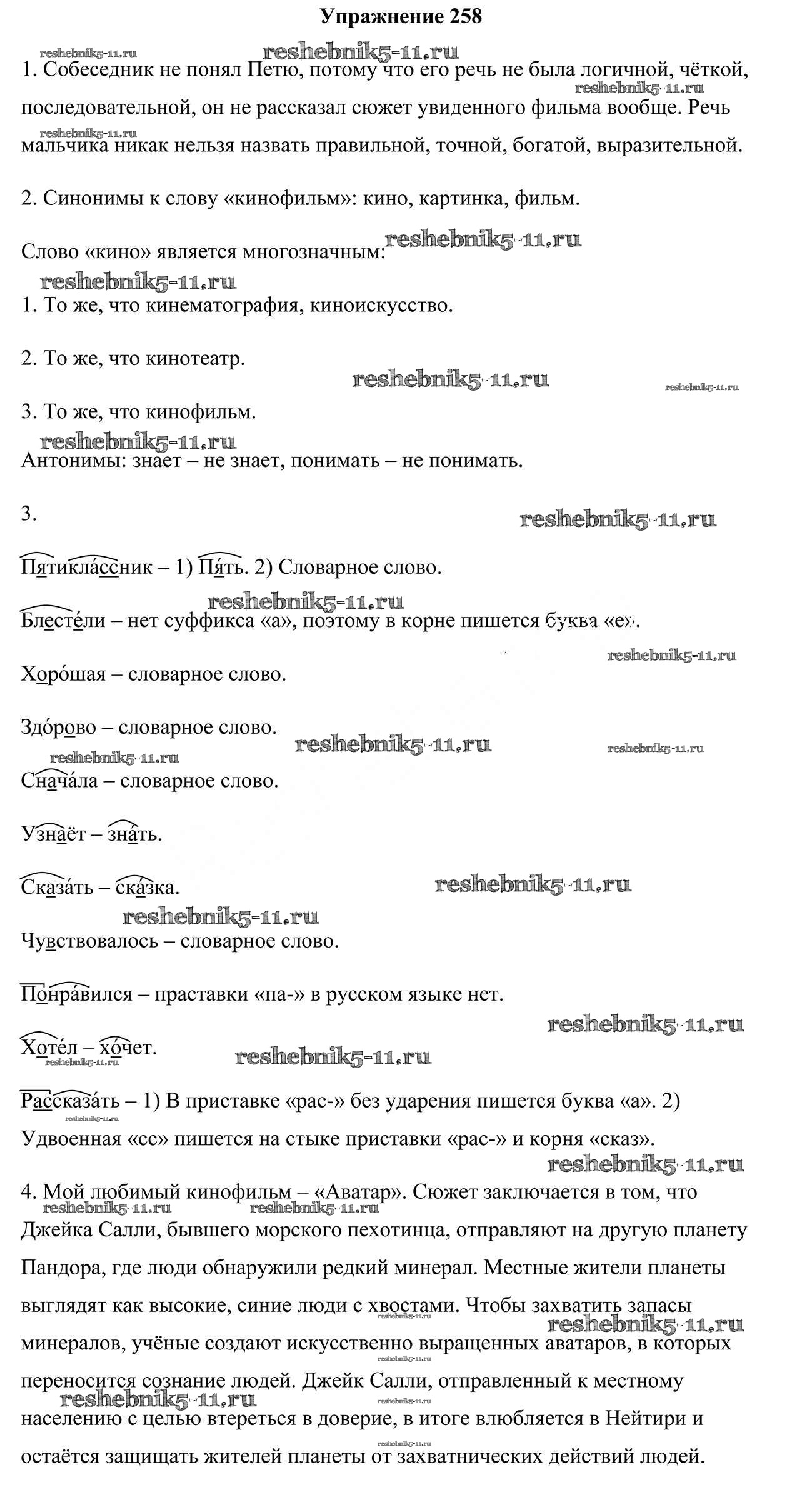 Готовая домашняя работа с ответами по Русскому языку за 5 класс Мурина, Игнатович, Жадейко Учебник Часть 1, 2 Национальный институт образования 2014 ФГОС - Часть 2. Задания 258