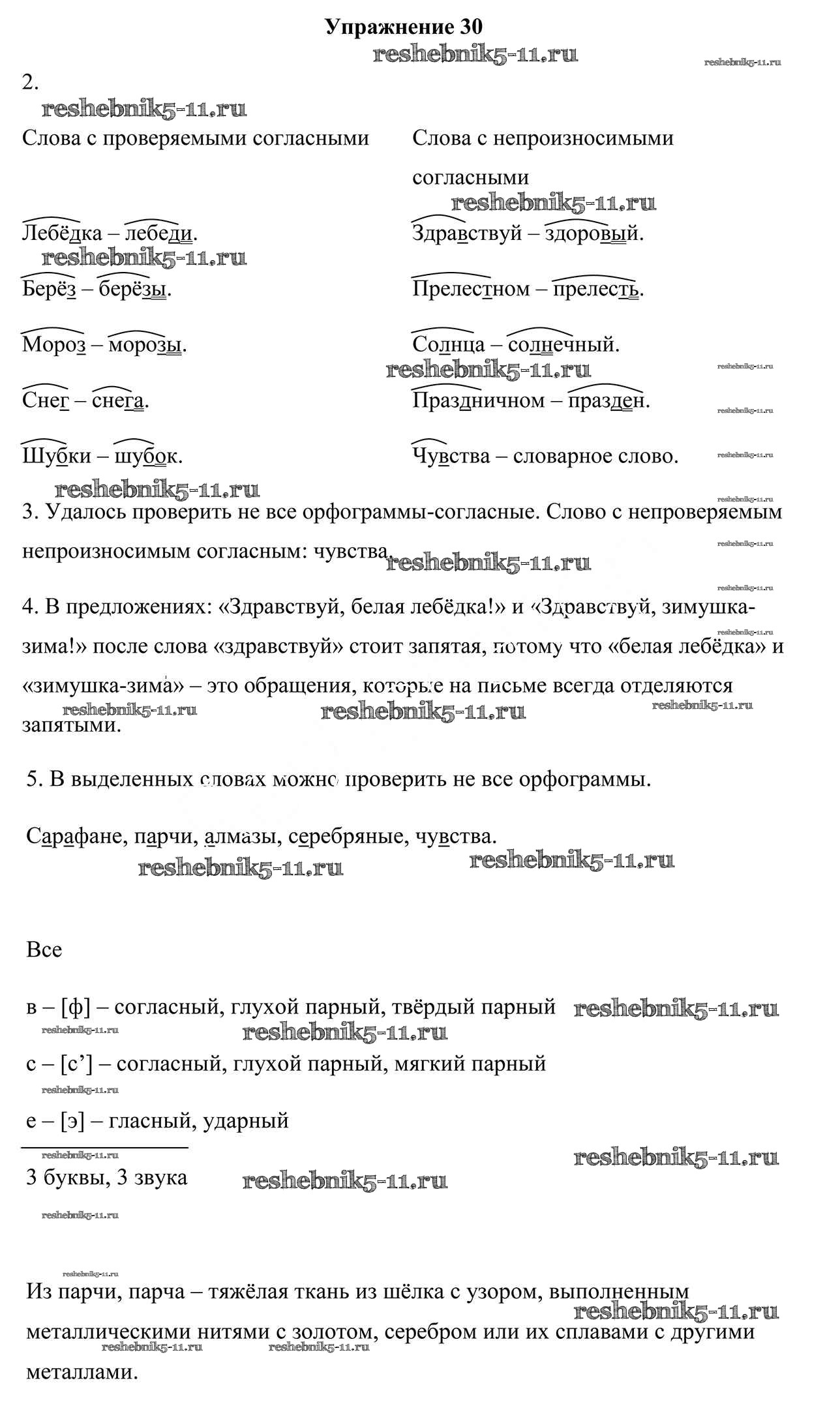 Готовая домашняя работа с ответами по Русскому языку за 5 класс Мурина, Игнатович, Жадейко Учебник Часть 1, 2 Национальный институт образования 2014 ФГОС - Часть 2. Задания 30