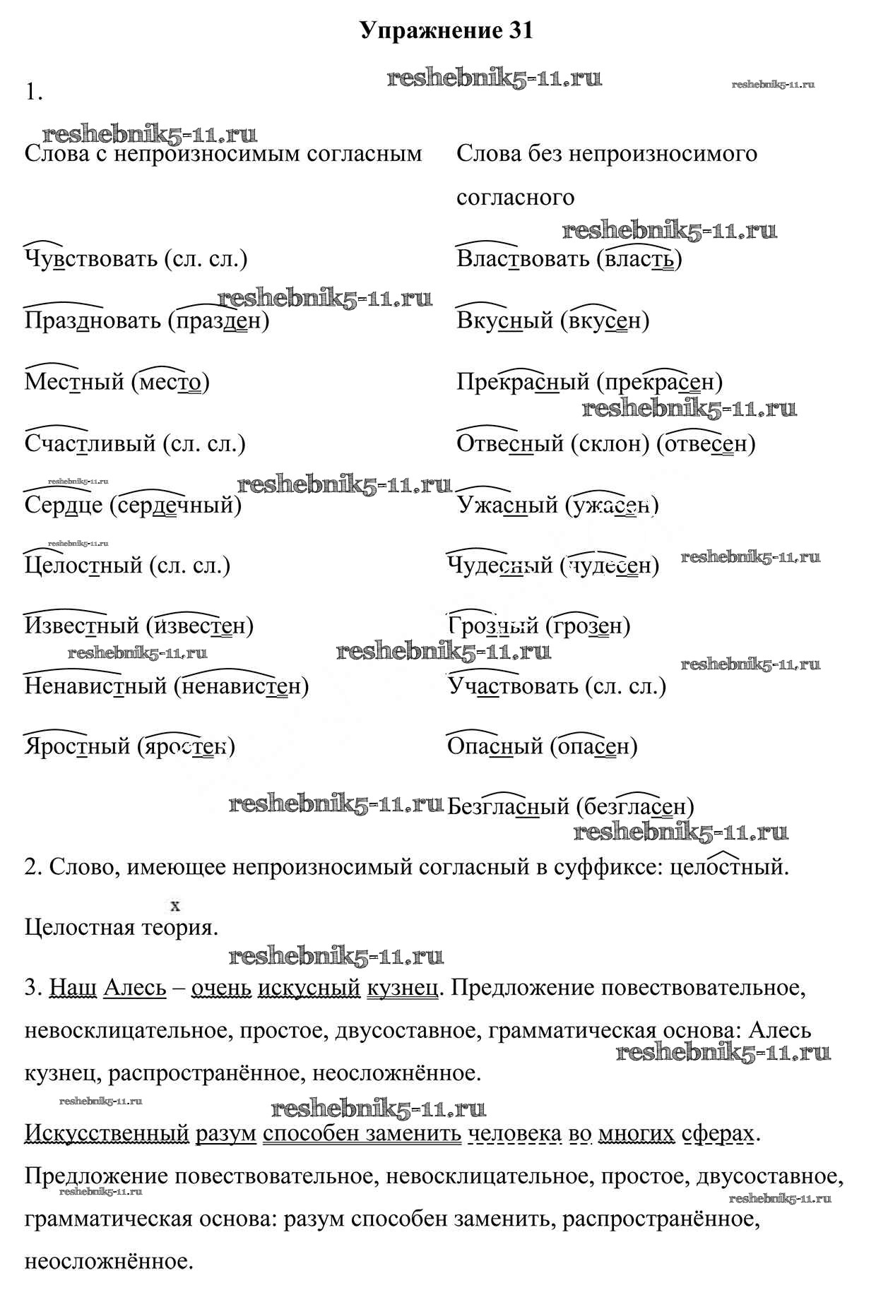 Готовая домашняя работа с ответами по Русскому языку за 5 класс Мурина, Игнатович, Жадейко Учебник Часть 1, 2 Национальный институт образования 2014 ФГОС - Часть 2. Задания 31