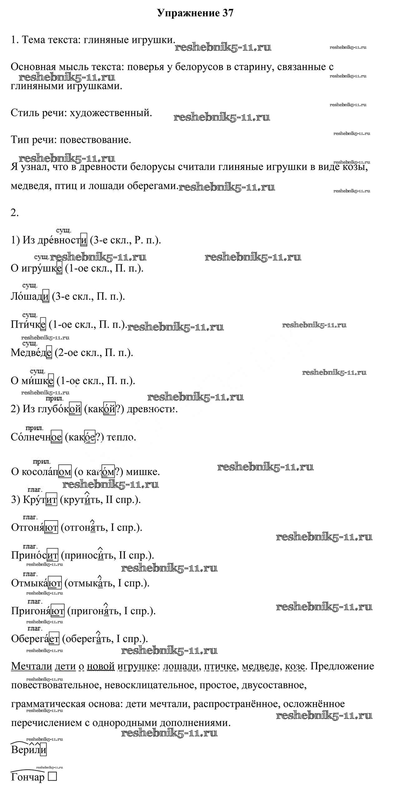 Готовая домашняя работа с ответами по Русскому языку за 5 класс Мурина, Игнатович, Жадейко Учебник Часть 1, 2 Национальный институт образования 2014 ФГОС - Часть 2. Задания 37