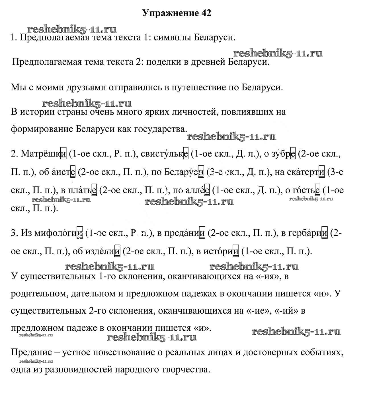 Готовая домашняя работа с ответами по Русскому языку за 5 класс Мурина, Игнатович, Жадейко Учебник Часть 1, 2 Национальный институт образования 2014 ФГОС - Часть 2. Задания 42