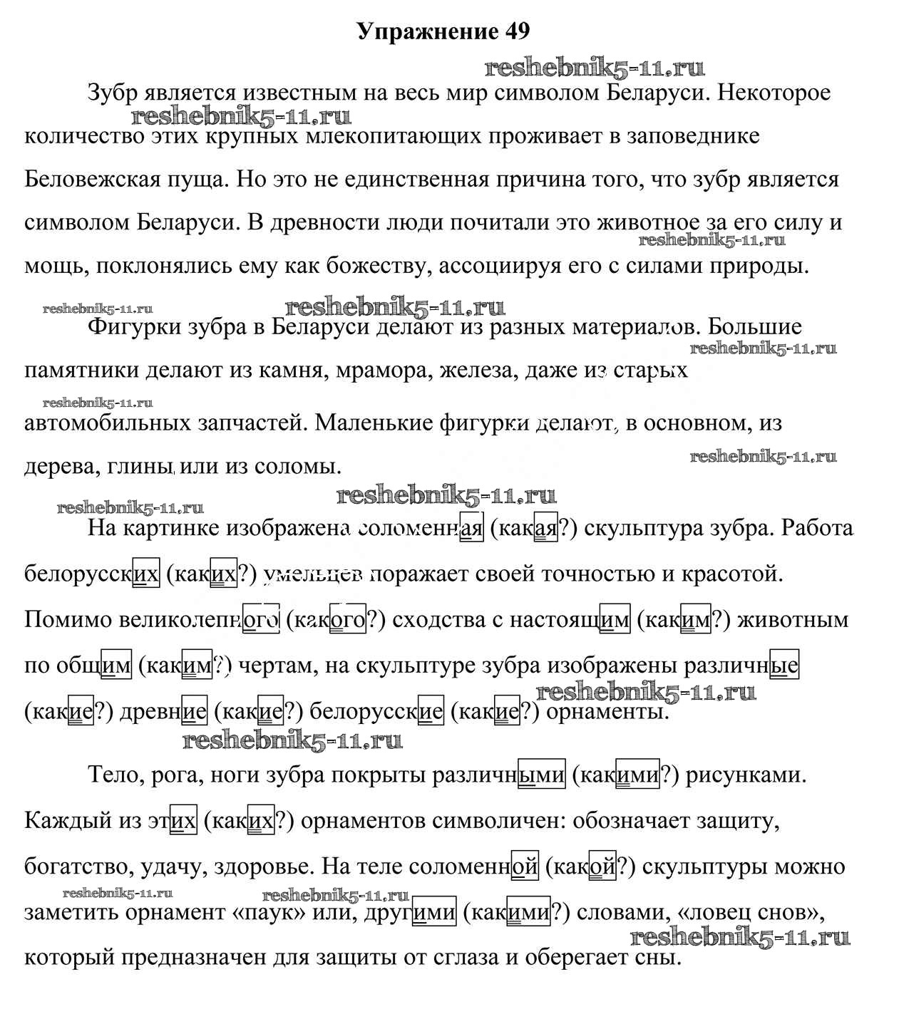 Готовая домашняя работа с ответами по Русскому языку за 5 класс Мурина, Игнатович, Жадейко Учебник Часть 1, 2 Национальный институт образования 2014 ФГОС - Часть 2. Задания 49