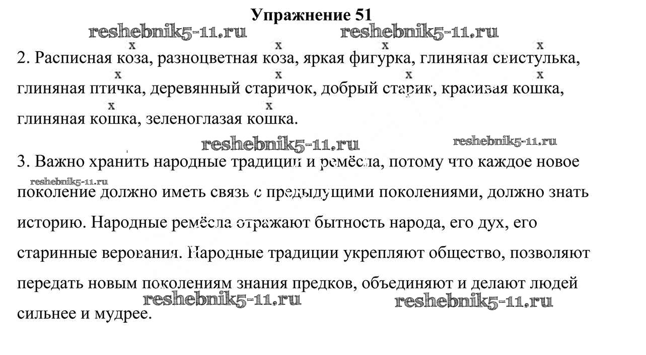 Готовая домашняя работа с ответами по Русскому языку за 5 класс Мурина, Игнатович, Жадейко Учебник Часть 1, 2 Национальный институт образования 2014 ФГОС - Часть 2. Задания 51