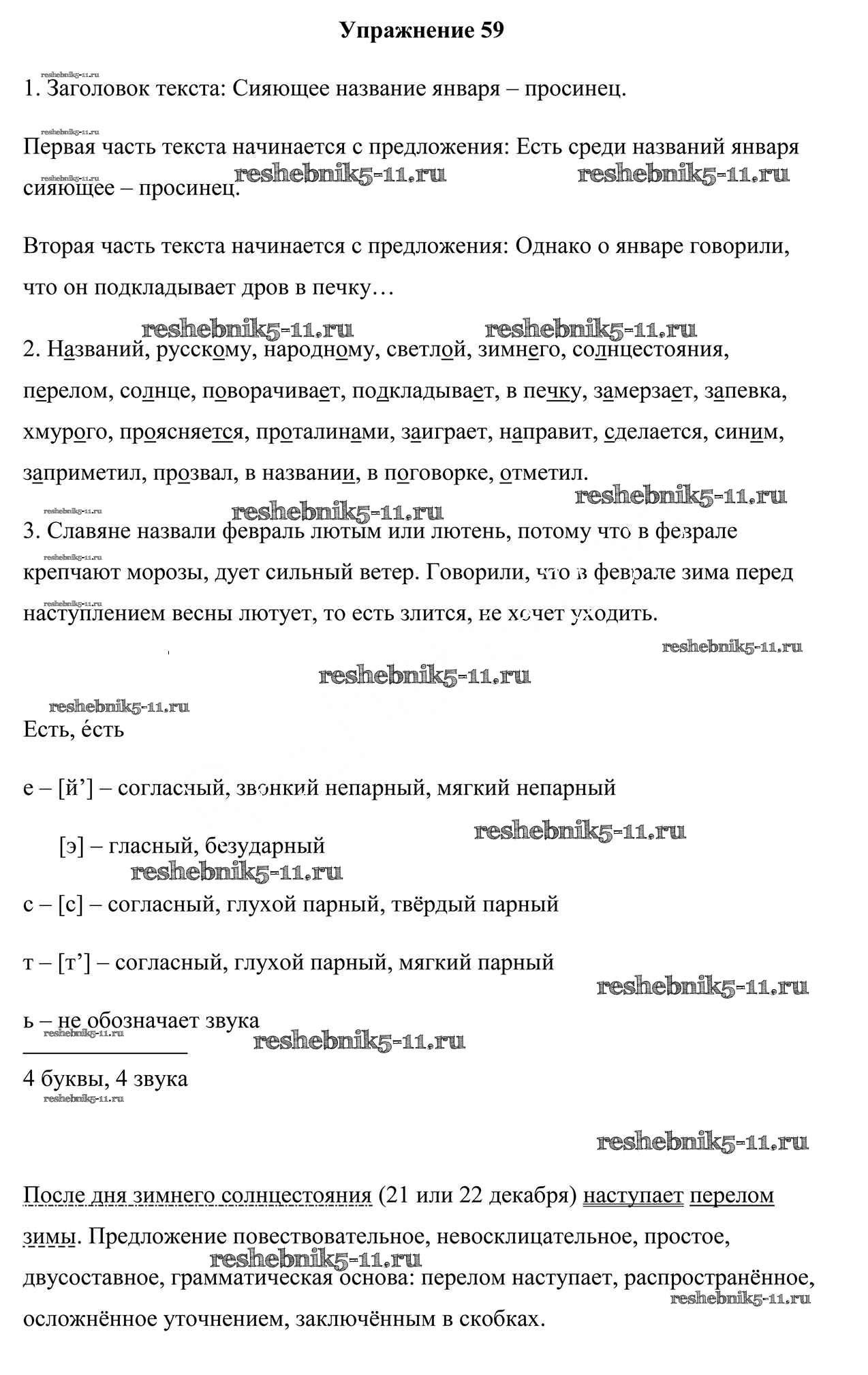 Готовая домашняя работа с ответами по Русскому языку за 5 класс Мурина, Игнатович, Жадейко Учебник Часть 1, 2 Национальный институт образования 2014 ФГОС - Часть 2. Задания 59