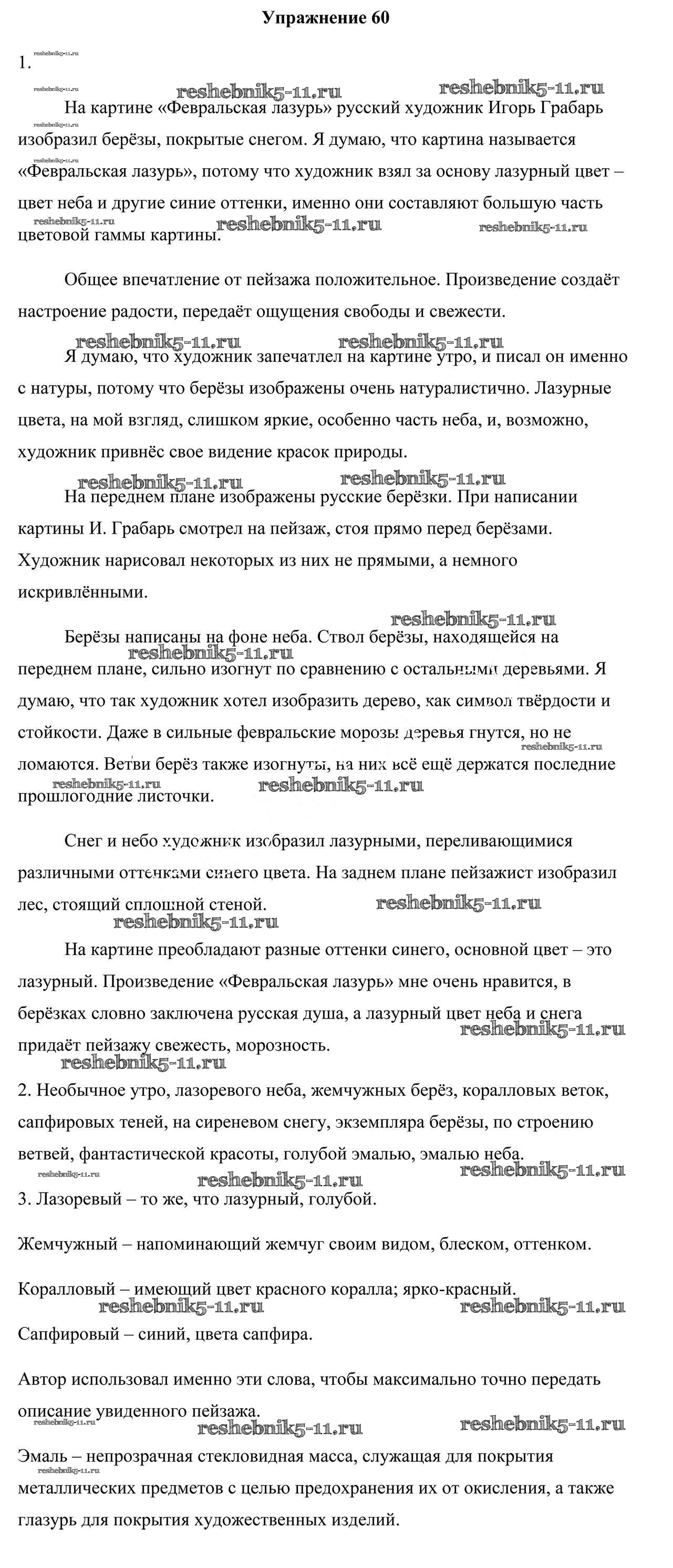 Готовая домашняя работа с ответами по Русскому языку за 5 класс Мурина, Игнатович, Жадейко Учебник Часть 1, 2 Национальный институт образования 2014 ФГОС - Часть 2. Задания 60