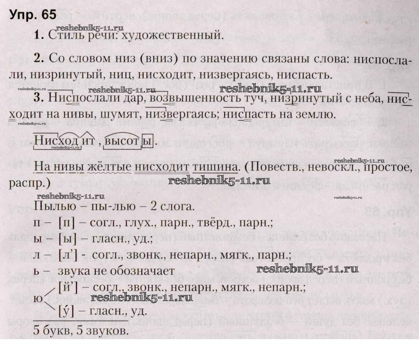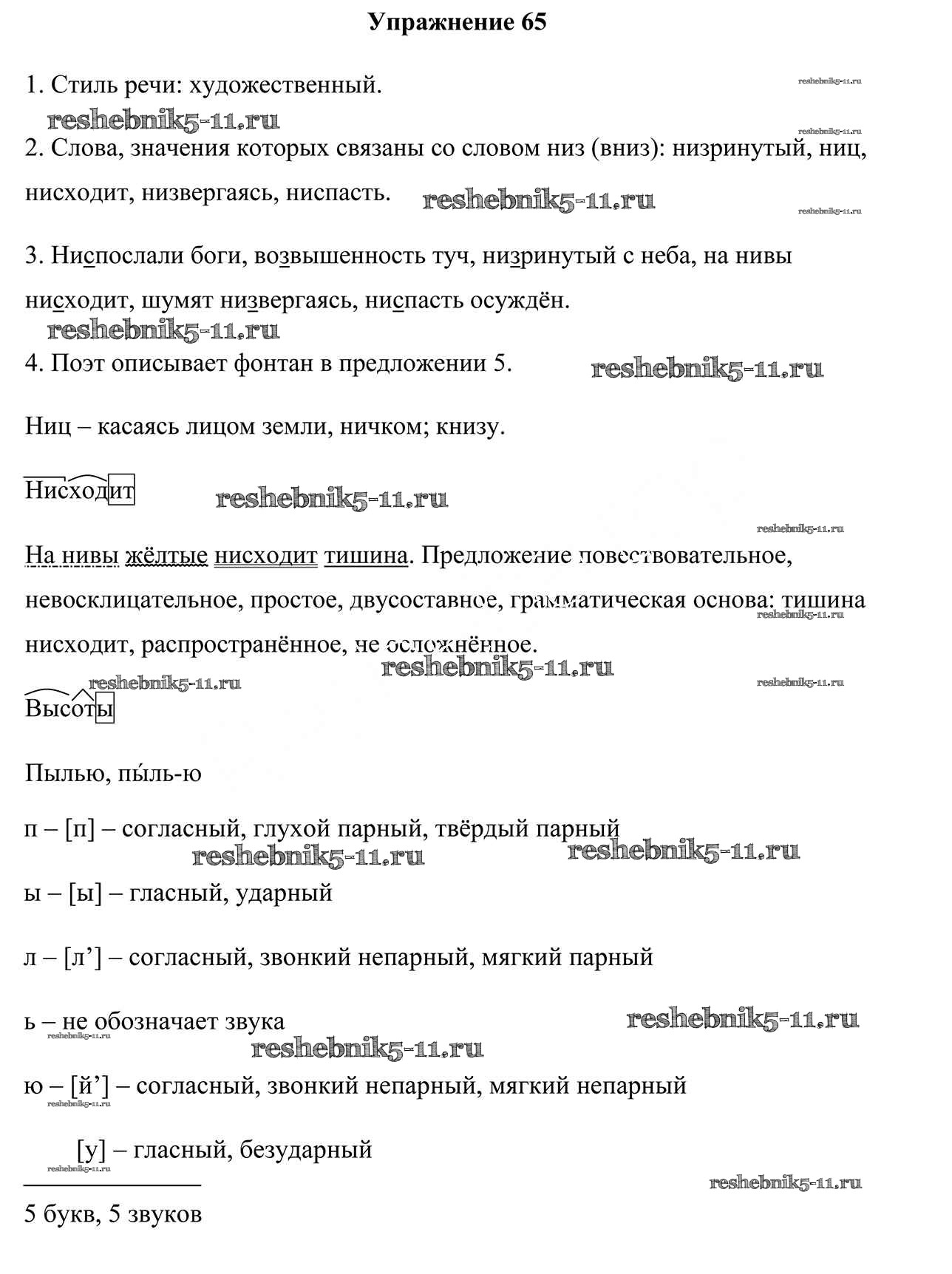 Готовая домашняя работа с ответами по Русскому языку за 5 класс Мурина, Игнатович, Жадейко Учебник Часть 1, 2 Национальный институт образования 2014 ФГОС - Часть 2. Задания 65