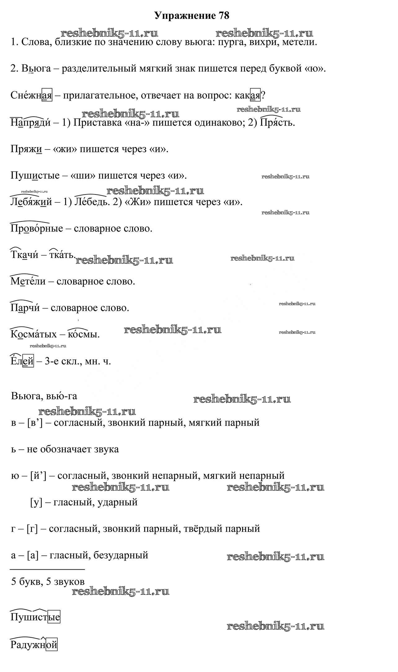 Готовая домашняя работа с ответами по Русскому языку за 5 класс Мурина, Игнатович, Жадейко Учебник Часть 1, 2 Национальный институт образования 2014 ФГОС - Часть 2. Задания 78