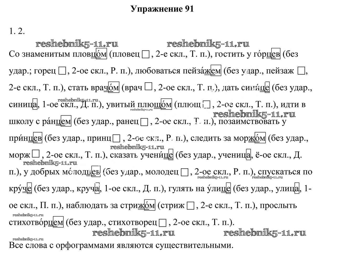 Готовая домашняя работа с ответами по Русскому языку за 5 класс Мурина, Игнатович, Жадейко Учебник Часть 1, 2 Национальный институт образования 2014 ФГОС - Часть 2. Задания 91