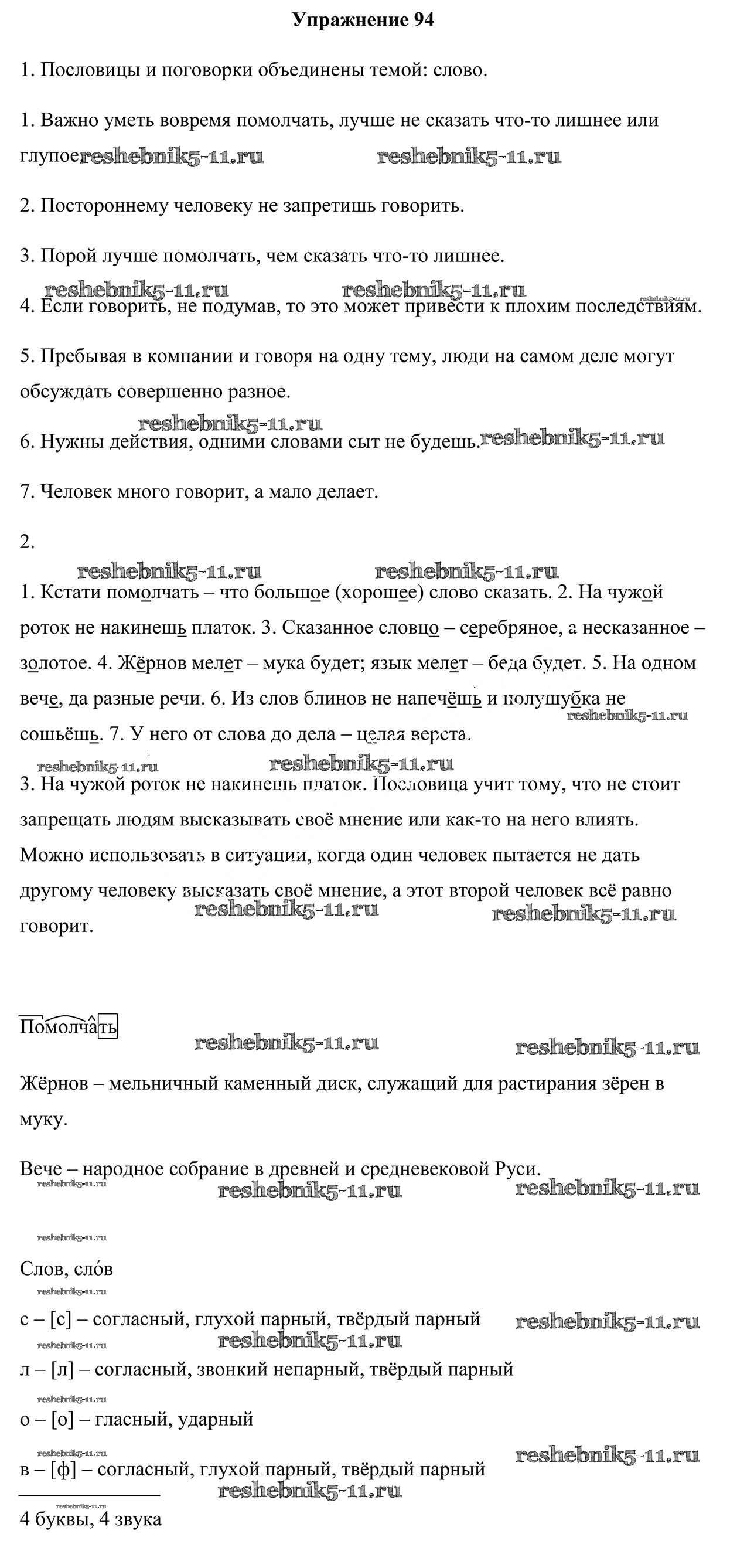 Готовая домашняя работа с ответами по Русскому языку за 5 класс Мурина, Игнатович, Жадейко Учебник Часть 1, 2 Национальный институт образования 2014 ФГОС - Часть 2. Задания 94