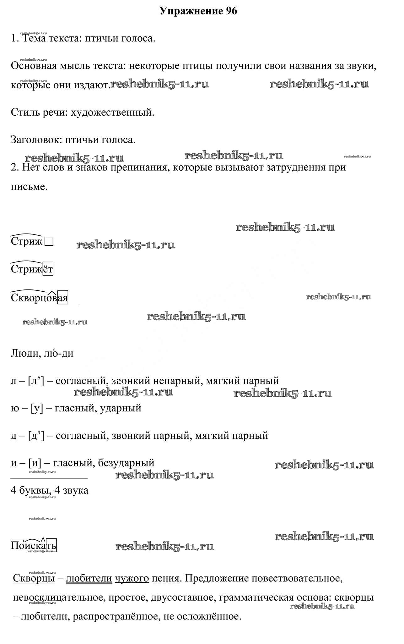 Готовая домашняя работа с ответами по Русскому языку за 5 класс Мурина, Игнатович, Жадейко Учебник Часть 1, 2 Национальный институт образования 2014 ФГОС - Часть 2. Задания 96