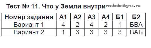 Готовая домашняя работа с ответами по Естествознанию за 5 класс Воронина Тесты УМК Экзамен 2015 ФГОС - Тесты Тест №11. Что у Земли внутри