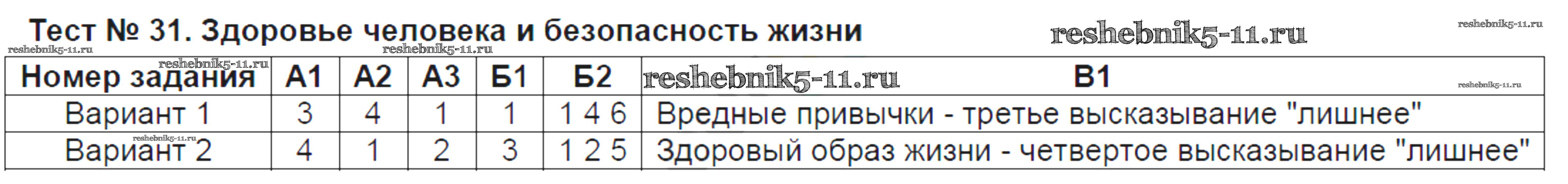 Тест №31. Здоровье человека и безопасность жизни