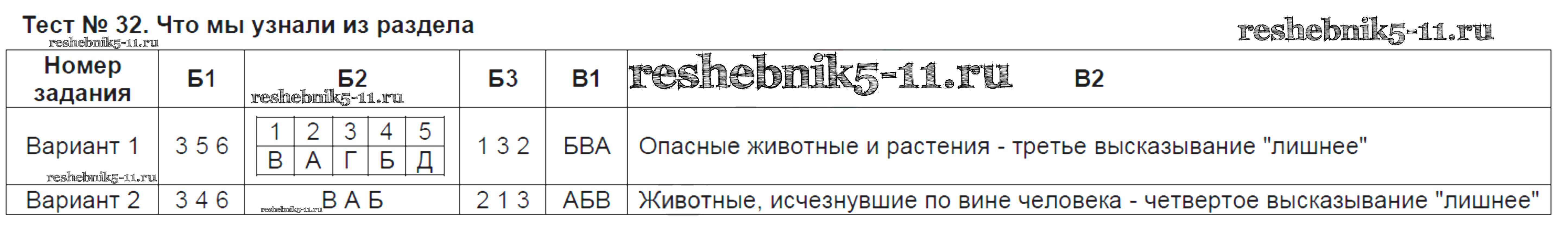 Готовая домашняя работа с ответами по Естествознанию за 5 класс Воронина Тесты УМК Экзамен 2015 ФГОС - Тесты Тест №32. Что мы узнали из раздела