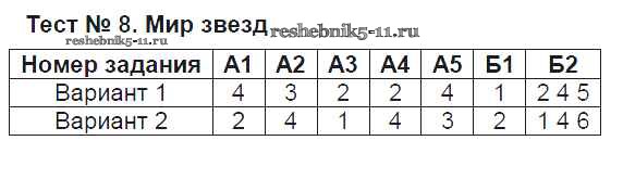 Готовая домашняя работа с ответами по Естествознанию за 5 класс Воронина Тесты УМК Экзамен 2015 ФГОС - Тесты Тест №8. Мир звезд