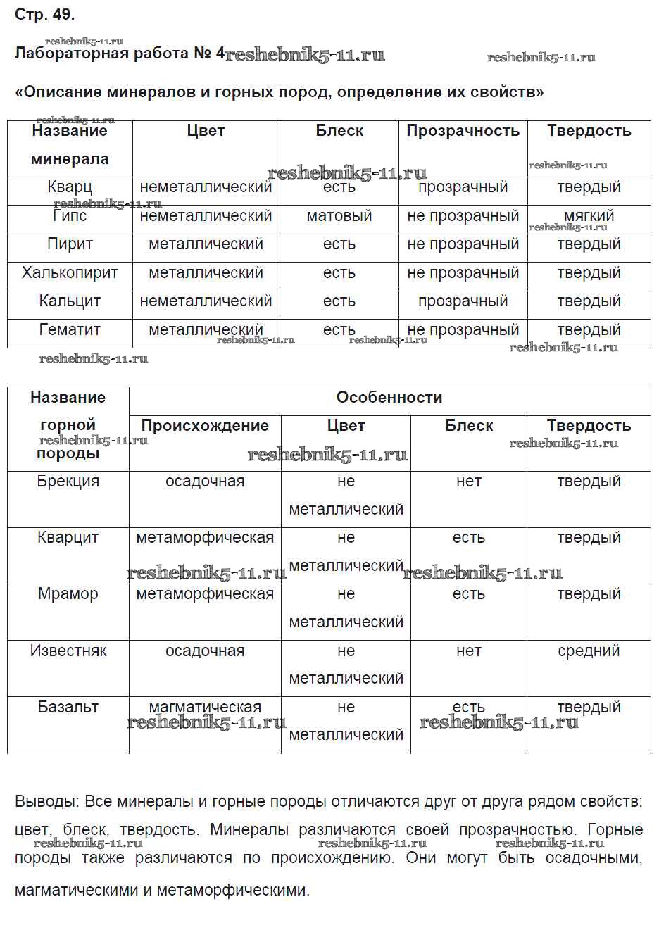 Готовая домашняя работа с ответами по Естествознанию за 5 класс Пакулова, Иванова Рабочая тетрадь Дрофа 2014 ФГОС - Страницы тетради 49