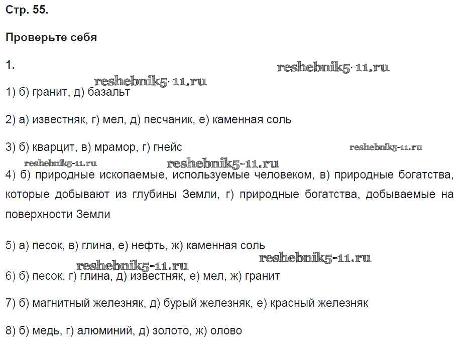 Готовая домашняя работа с ответами по Естествознанию за 5 класс Пакулова, Иванова Рабочая тетрадь Дрофа 2014 ФГОС - Страницы тетради 55