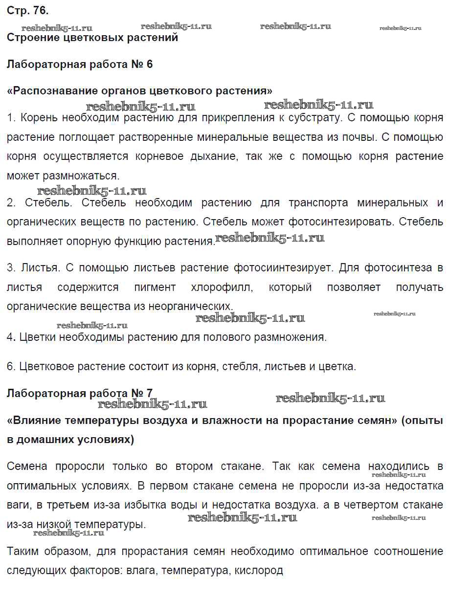 Готовая домашняя работа с ответами по Естествознанию за 5 класс Пакулова, Иванова Рабочая тетрадь Дрофа 2014 ФГОС - Страницы тетради 76