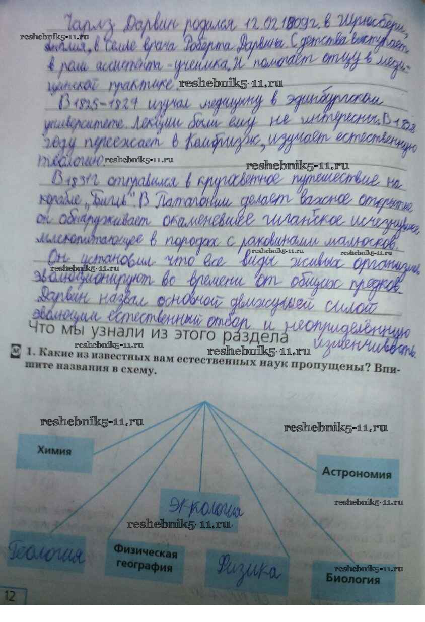 Готовая домашняя работа с ответами по Естествознанию за 5 класс Плешаков, Сонин Рабочая тетрадь Вертикаль Дрофа 2015 ФГОС - Страницы 12