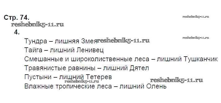 Готовая домашняя работа с ответами по Естествознанию за 5 класс Плешаков, Сонин Рабочая тетрадь Вертикаль Дрофа 2015 ФГОС - Страницы 74