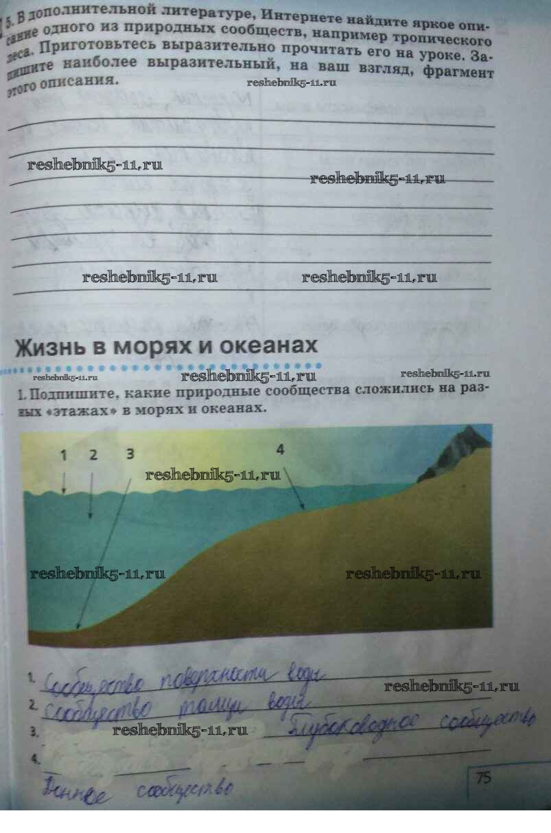 Готовая домашняя работа с ответами по Естествознанию за 5 класс Плешаков, Сонин Рабочая тетрадь Вертикаль Дрофа 2015 ФГОС - Страницы 75