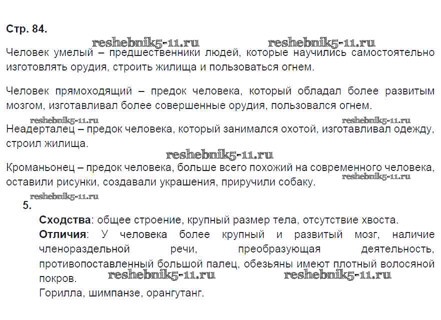Готовая домашняя работа с ответами по Естествознанию за 5 класс Плешаков, Сонин Рабочая тетрадь Вертикаль Дрофа 2015 ФГОС - Страницы 84
