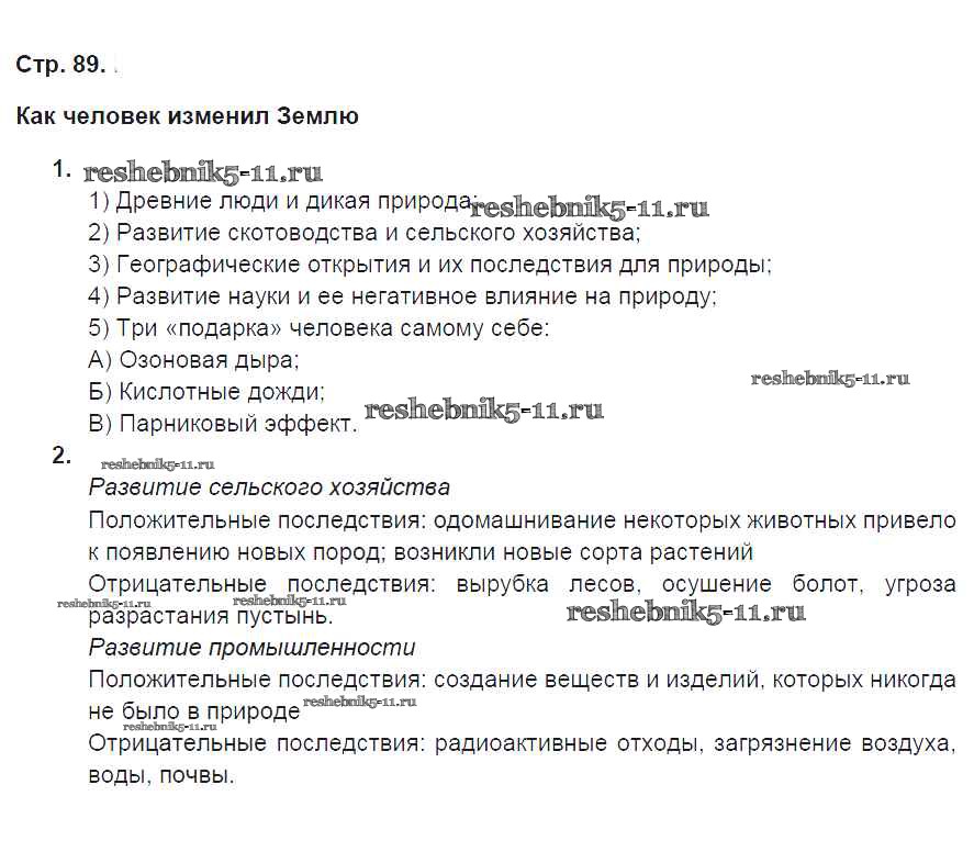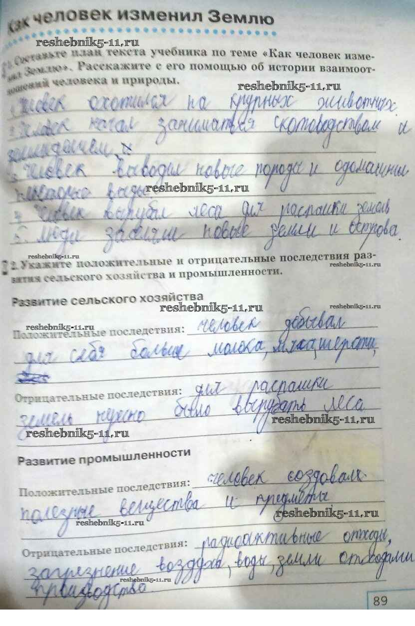 Готовая домашняя работа с ответами по Естествознанию за 5 класс Плешаков, Сонин Рабочая тетрадь Вертикаль Дрофа 2015 ФГОС - Страницы 89