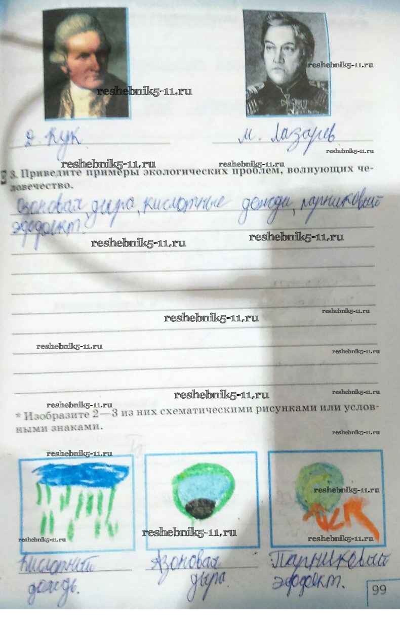 Готовая домашняя работа с ответами по Естествознанию за 5 класс Плешаков, Сонин Рабочая тетрадь Вертикаль Дрофа 2015 ФГОС - Страницы 99