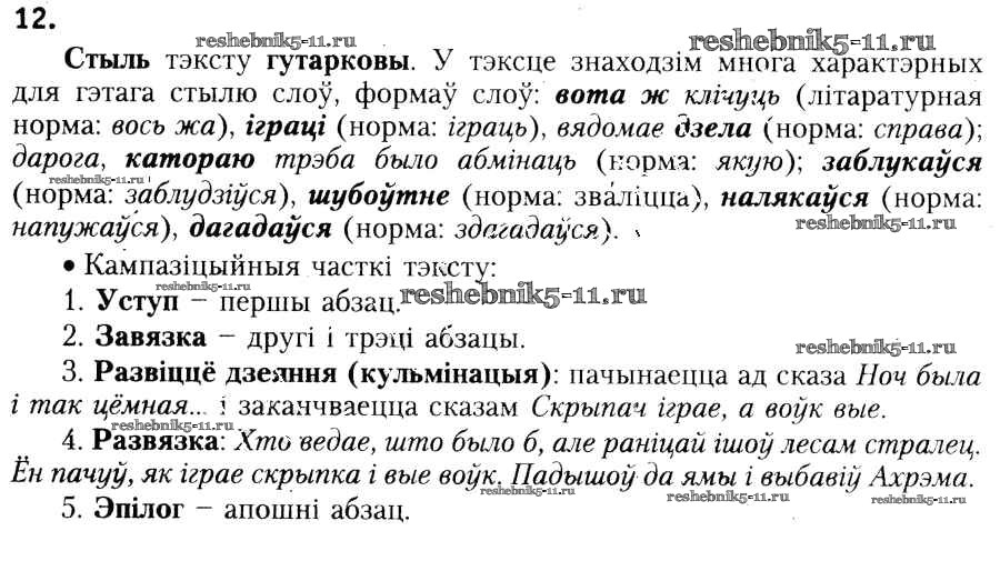 Готовая домашняя работа с ответами по Белорусскому языку за 6 класс Красней, Лаурель, Рачэўскі Учебник Национальный институт образования 2015 ФГОС - Практыкаванні 12