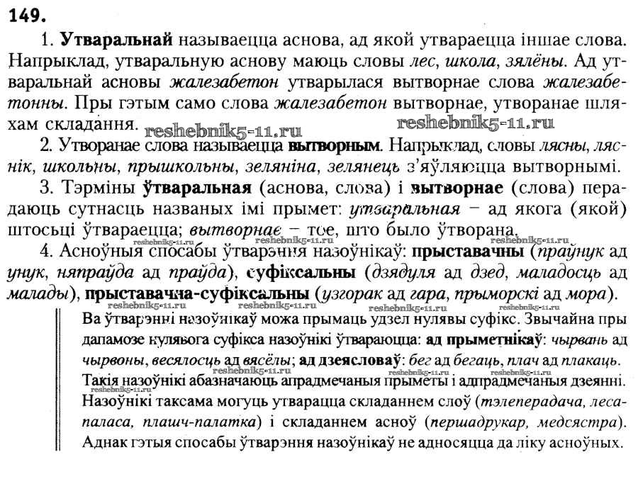 Готовая домашняя работа с ответами по Белорусскому языку за 6 класс Красней, Лаурель, Рачэўскі Учебник Национальный институт образования 2015 ФГОС - Практыкаванні 149