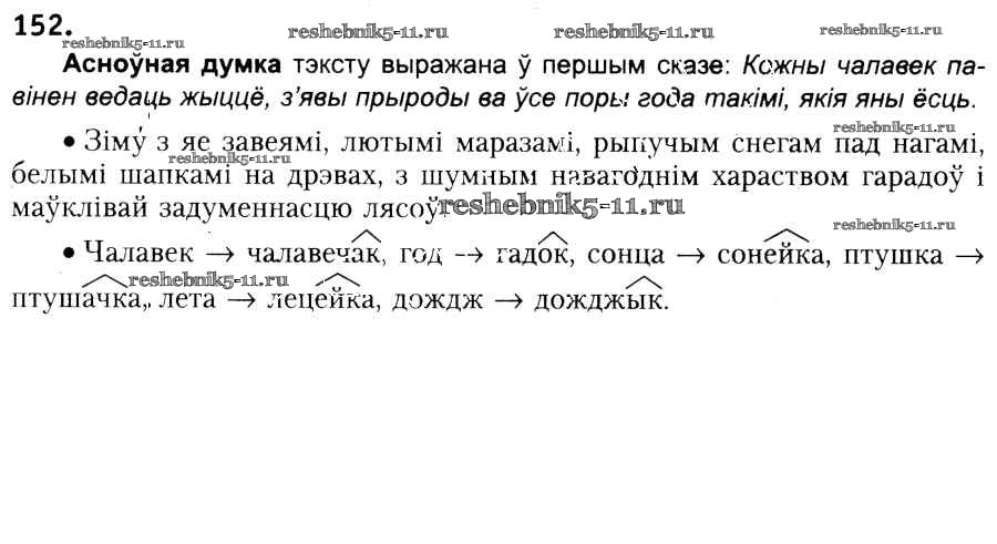 Готовая домашняя работа с ответами по Белорусскому языку за 6 класс Красней, Лаурель, Рачэўскі Учебник Национальный институт образования 2015 ФГОС - Практыкаванні 152