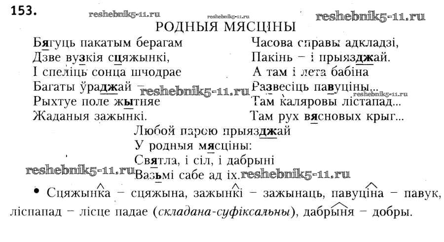 Готовая домашняя работа с ответами по Белорусскому языку за 6 класс Красней, Лаурель, Рачэўскі Учебник Национальный институт образования 2015 ФГОС - Практыкаванні 153