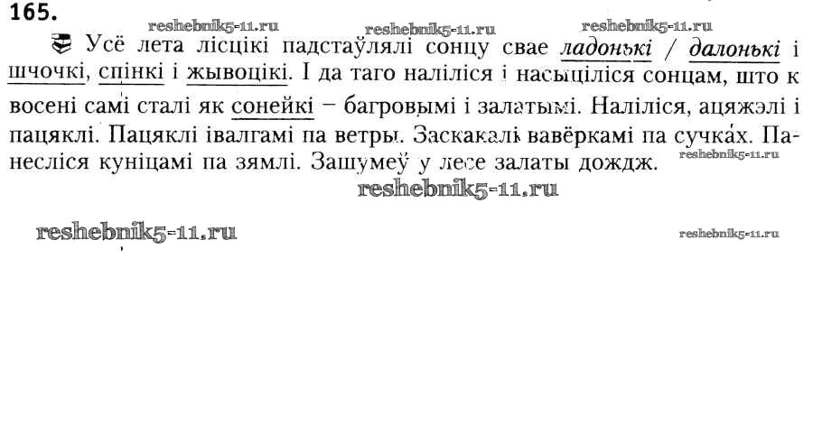 Готовая домашняя работа с ответами по Белорусскому языку за 6 класс Красней, Лаурель, Рачэўскі Учебник Национальный институт образования 2015 ФГОС - Практыкаванні 165