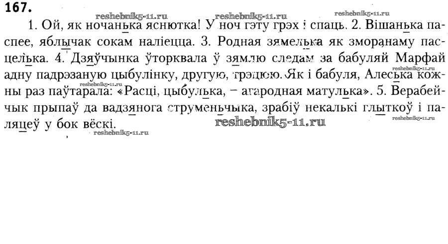 Готовая домашняя работа с ответами по Белорусскому языку за 6 класс Красней, Лаурель, Рачэўскі Учебник Национальный институт образования 2015 ФГОС - Практыкаванні 167