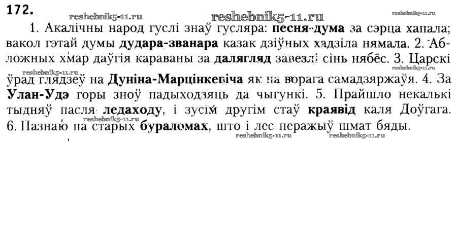 Готовая домашняя работа с ответами по Белорусскому языку за 6 класс Красней, Лаурель, Рачэўскі Учебник Национальный институт образования 2015 ФГОС - Практыкаванні 172
