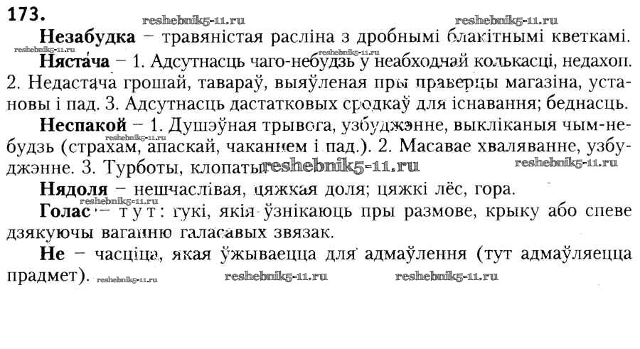 Готовая домашняя работа с ответами по Белорусскому языку за 6 класс Красней, Лаурель, Рачэўскі Учебник Национальный институт образования 2015 ФГОС - Практыкаванні 173