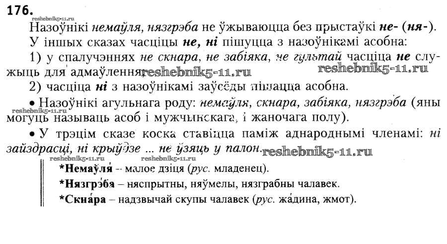 Готовая домашняя работа с ответами по Белорусскому языку за 6 класс Красней, Лаурель, Рачэўскі Учебник Национальный институт образования 2015 ФГОС - Практыкаванні 176