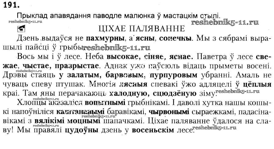 Готовая домашняя работа с ответами по Белорусскому языку за 6 класс Красней, Лаурель, Рачэўскі Учебник Национальный институт образования 2015 ФГОС - Практыкаванні 191