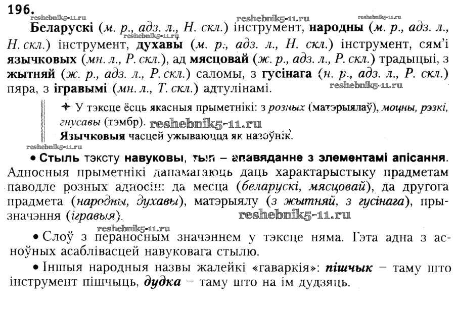 Готовая домашняя работа с ответами по Белорусскому языку за 6 класс Красней, Лаурель, Рачэўскі Учебник Национальный институт образования 2015 ФГОС - Практыкаванні 196
