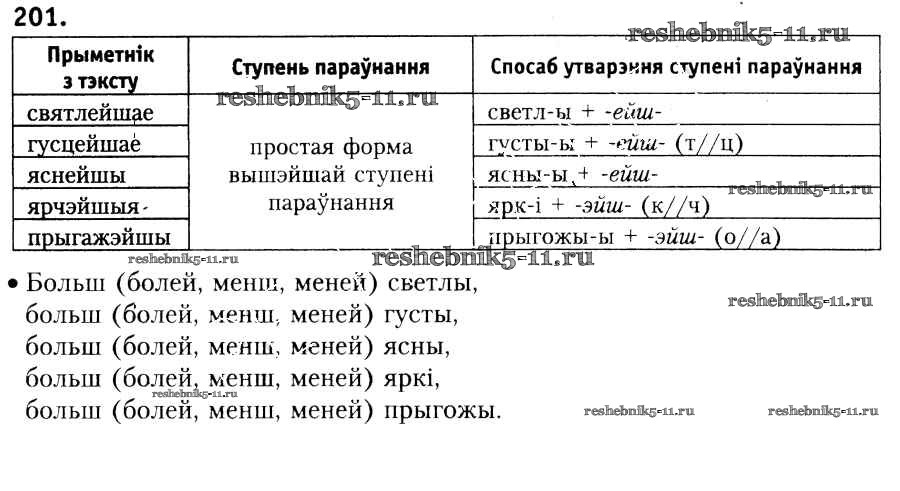 Готовая домашняя работа с ответами по Белорусскому языку за 6 класс Красней, Лаурель, Рачэўскі Учебник Национальный институт образования 2015 ФГОС - Практыкаванні 201